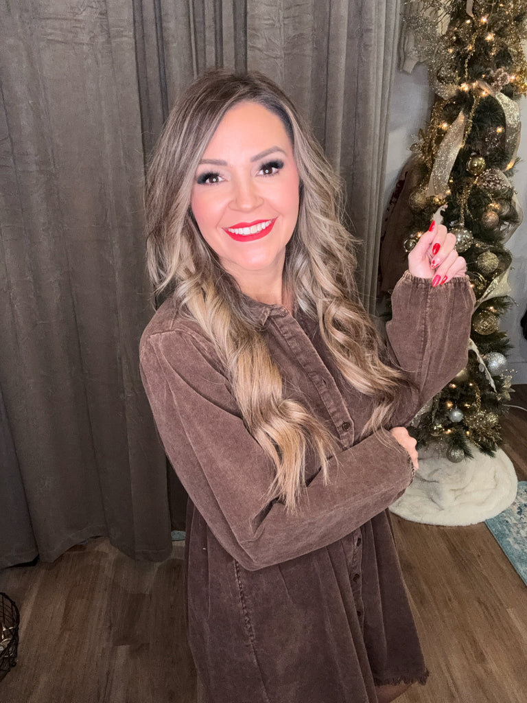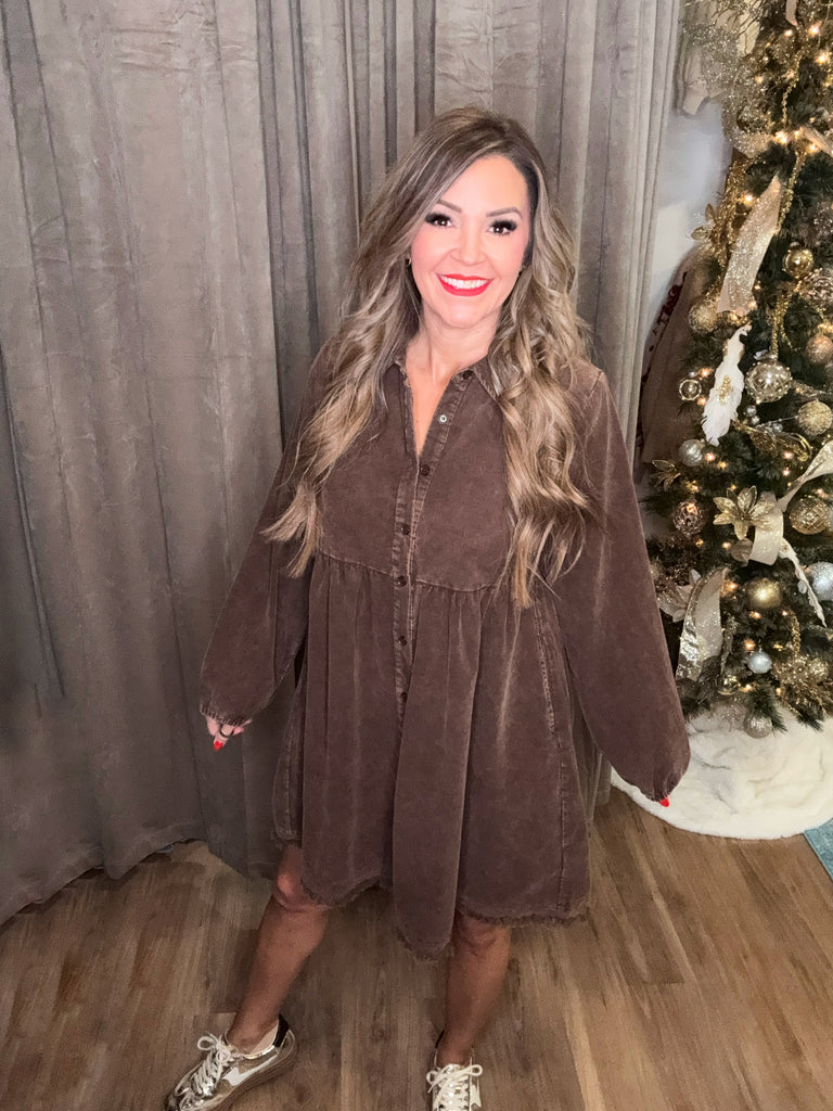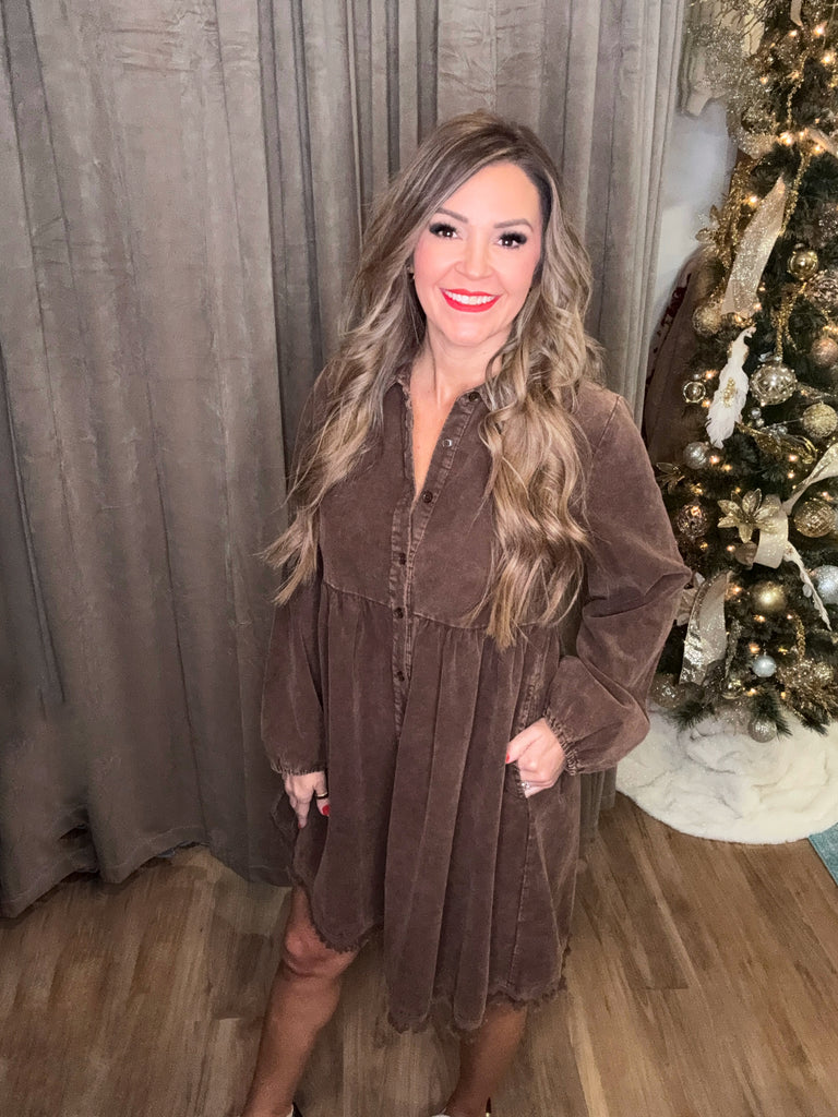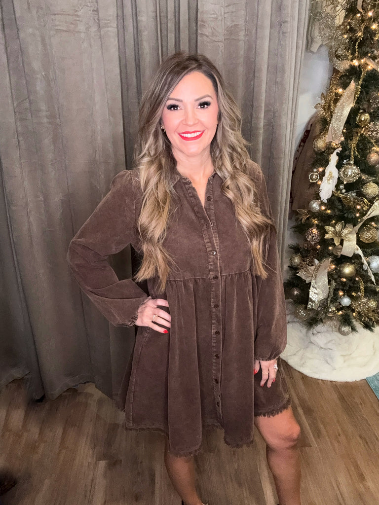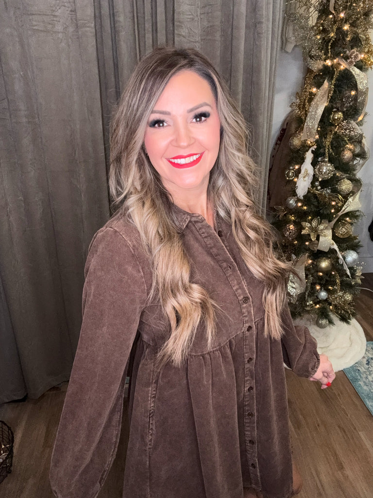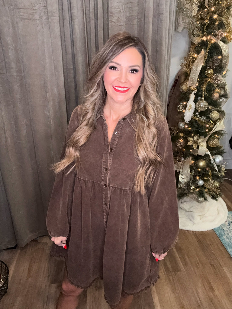 Introducing the Elodie Corduroy Dress in classic brown. Made from 100% cotton for ultimate comfort and breathability. Perfect for any occasion, this dress is a versatile addition to your wardrobe. Say goodbye to uncomfortable clothes, and hello to effortless style!