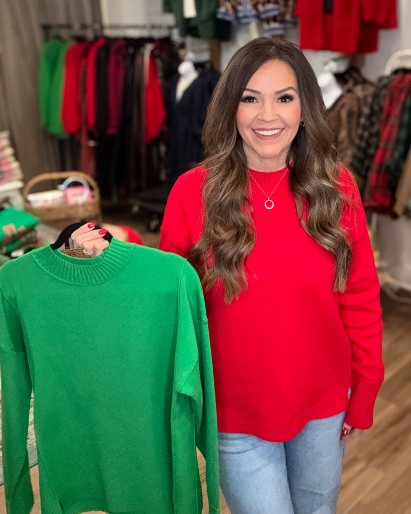Cozy up in the Everett Sweater, your new go-to for effortless style! This heavyweight pullover features a chic mock neck and long sleeves perfect for layering through chilly seasons. The clever side slits add a playful twist to a classic silhouette, giving you easy movement and a modern edge. Whether you're sipping cocoa or running errands, this solid green sweater delivers comfort without compromising on looks. A wardrobe essential that works as hard as you do!