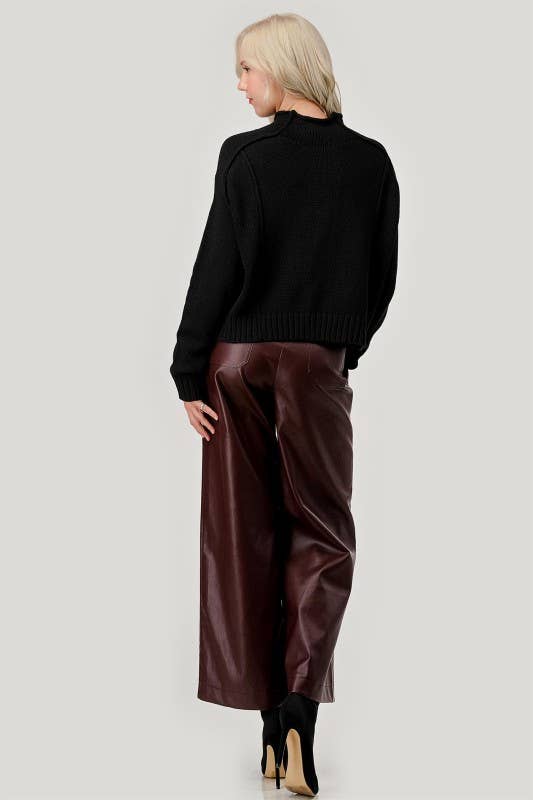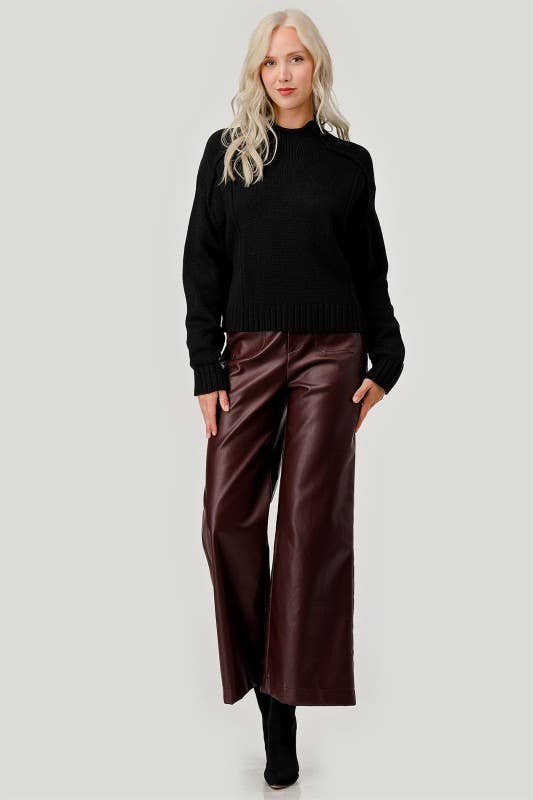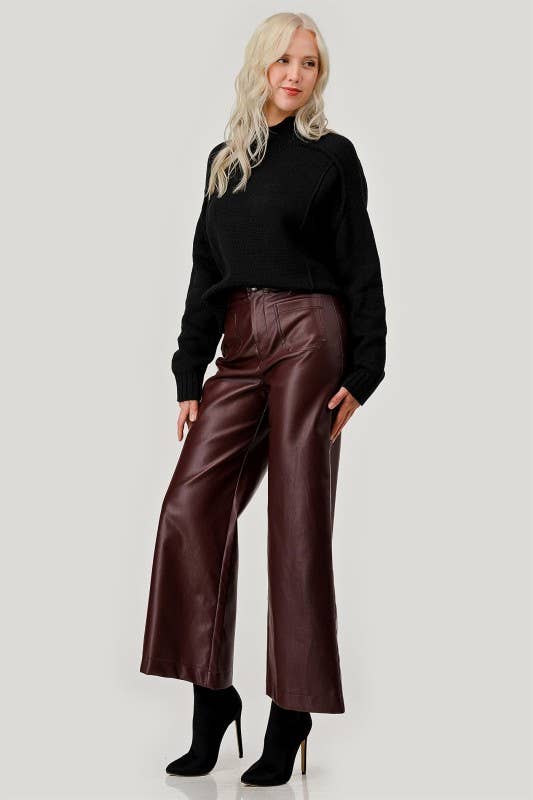 Faux Leather Wide-Leg Pants - Chocolate