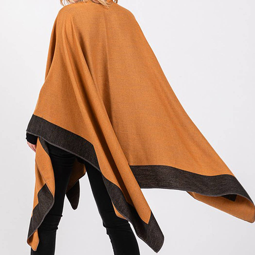 * Two Tone Pull Through Shawl Ruana * SIZE : 53"X61". * CONTENTS : 100% POLYESTER. * Perfect for adding a pop of color to your outfit while staying warm and comfortable.