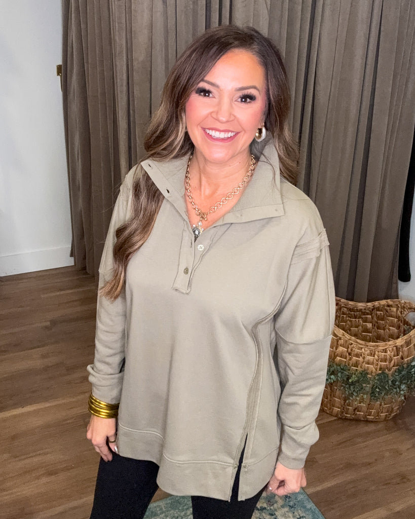 Add a touch of casual cool with the Lora Top in Sage Green. Featuring a trendy raw cut accent, this solid top combines effortless style with cozy comfort thanks to its soft cotton-poly blend. Easy to wear and full of playful charm, it’s the perfect pick for laid-back days with a stylish twist.