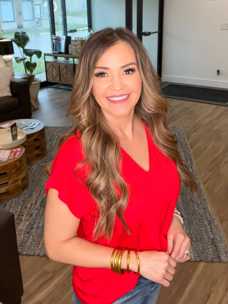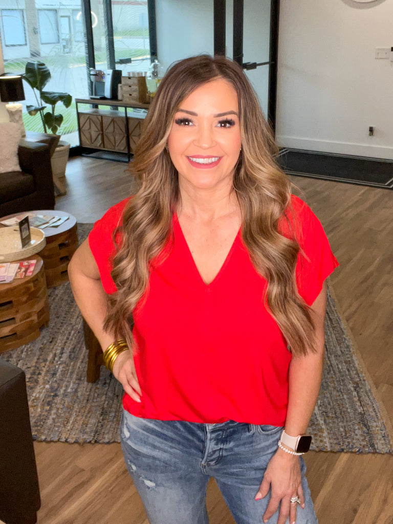 Lily V-Neck Top - Red