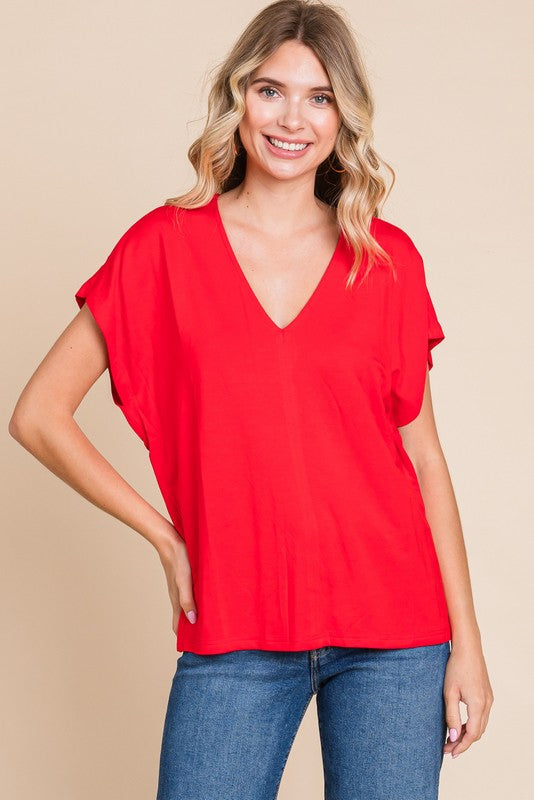 Introducing the vibrant and versatile Lily V-Neck Top in bold red! Featuring a flattering V-neck, short dolman sleeves, and a lightweight design, this solid top is perfect for any occasion. Unlined and non-sheer, it offers comfort and style without compromising on breathability. Elevate your wardrobe with this must-have piece!