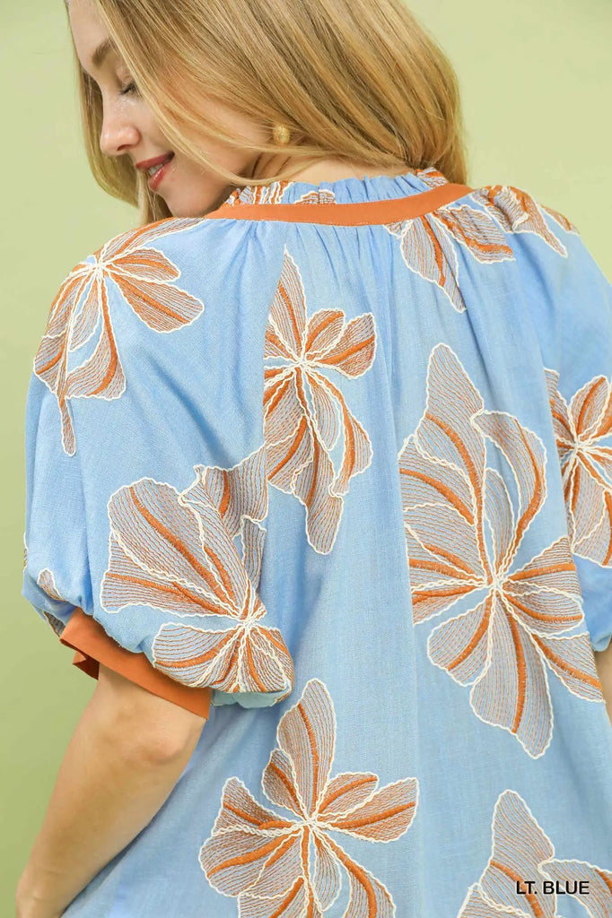 The Dream Chaser Top brings understated elegance to your closet with its thoughtfully designed silhouette. Crafted from lightweight linen, this top features a striking split V-neck trimmed in contrasting fabric for visual depth. Elbow-length puff sleeves with matching cuff details create a feminine, contemporary look that works across seasons. The streamlined straight hem ensures a polished appearance whether you're dressing it up with tailored trousers or keeping it casual with denim. A versatile staple that effortlessly transitions from work to weekend.