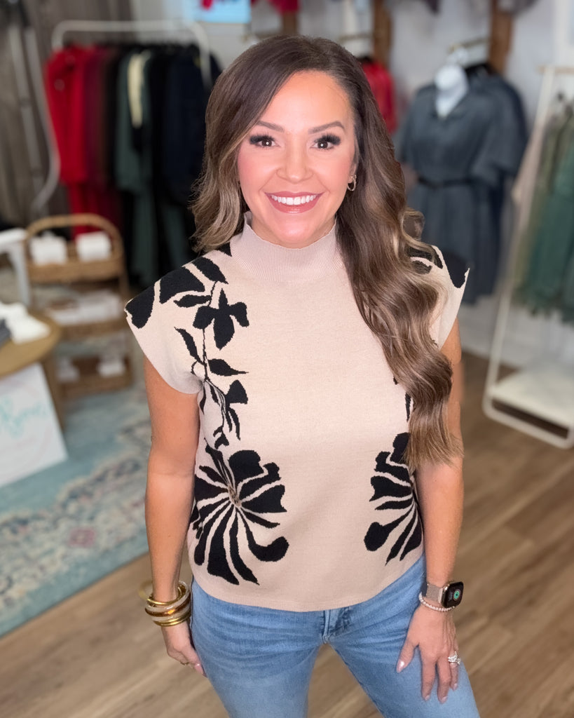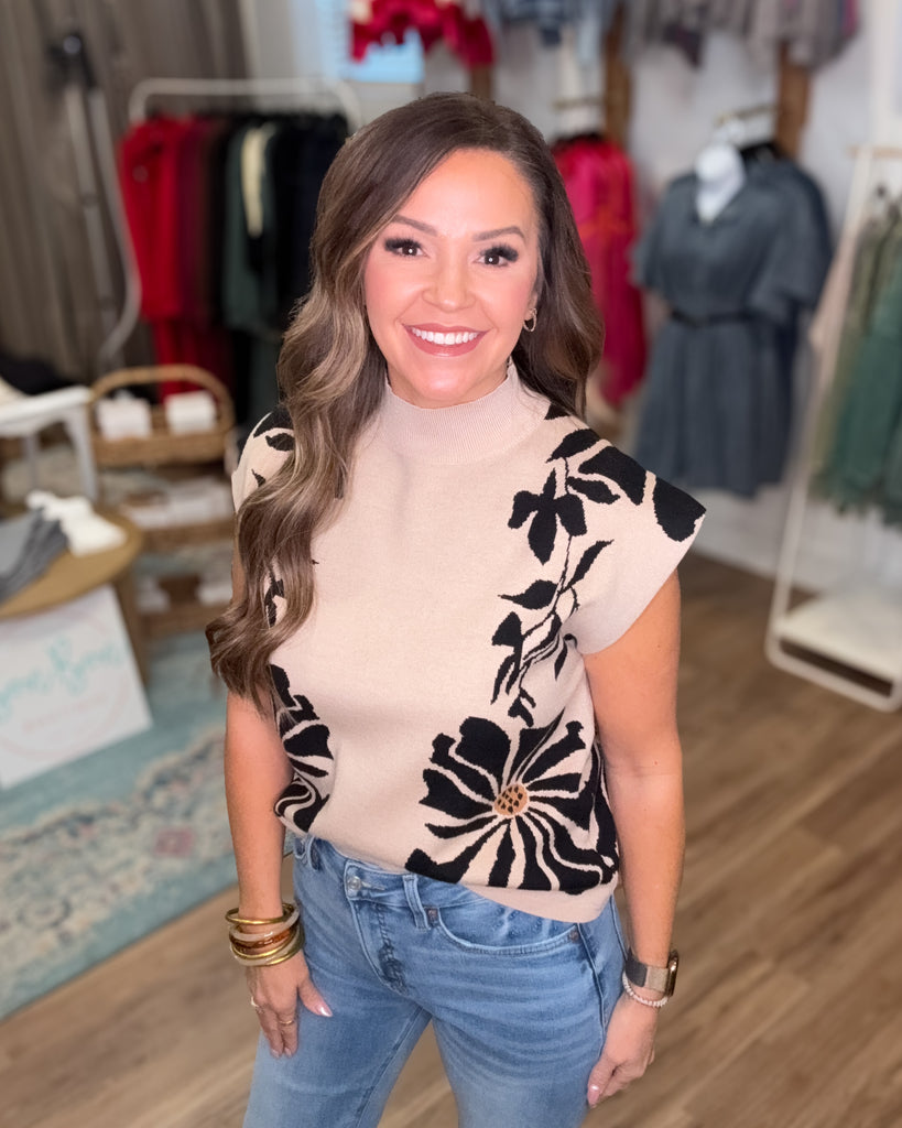 Embrace cozy charm with the Landon Sweater, featuring a playful floral pattern and a chic high neck. This pullover brings together warmth and style, making it your go-to top for adding a fun, fresh vibe to any outfit. Perfect for layering or wearing solo, it’s designed to brighten up your day while keeping you comfy and stylish.